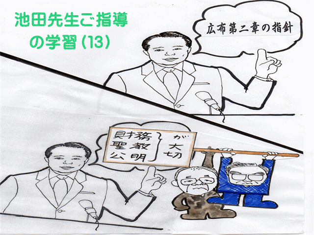 第1回目は小説人間革命第10巻。270㌻の8行目から291㌻までを、本をお持ちでない方のために抜粋して掲載します。この抜粋部分では戸田先生・池田先生が、魔性の権力とも言われる政治に、創価学会が関わりを持たざるを得ない状況を、師弟ともに… 2018年12月5日 昭和30年前半頃の自民党による憲法9条改正の考え方は、国際的に認められている個別的自衛権の自国防衛の軍事力を持つことにありました。1951年に行われたサンフランシスコ講和条約によって名目上、日本は独立国として誕生しましたが実質上は… 2018年12月14日 創価学会の基本となる宗教理念は立正安国論にあります。そして私は昭和41年7月3日に発刊された池田先生監修の立正安国論講義が、創価学会の歴史を池田先生と共に歩んできた私達弟子が最も基本として行くべき宗教理念を学ぶ一書と考えています… 2018年12月22日 今回は、学習(2)で取り上げた憲法9条に対しての池田先生の考え方をより詳しく学習していきたいと思いますので、歴史上世界的に著名な社会歴史学者であるA・J・トインビーと池田先生との対話から学んでいきたいと思います… 2019年1月7日 お二人の会話の前段では、憲法9条の中に自衛権(命を守る為の正当防衛の権利)の行使が含まれていることを前提に話されています。私が抜粋した部分を、読者の皆様が学習する際には、この「自衛権の行使」とは… 2019年1月8日 学習3の補足・解説(A) では「自衛権の本質」とは、自国を守るためにだけ許される武力行為であって、国際的に認められている自国防衛のために敵対国を攻撃できるという「個別的自衛権」の考え方は、本来の… 2019年1月22日 憲法9条の下で日本の防衛を考えるには、「自衛権」の解釈が最も基本となりますので、しつこいようですが再度確認します。①池田先生が認められている自衛権の解釈。自衛権=… 2019年1月31日 アメリカは、これまでに実戦で使用できる核兵器の開発を行い、バンカーバスター弾(地中貫通爆弾)や劣化ウラン弾を使用してきましたが、更に昨年2月に「核戦略見直し」を明らかにして以来、時代はアメリカ・ロシア・中国と… 2019年2月2日 人類の生存をも脅かす核兵器が開発され、現在においてはその核のボタンを押してしまう危険な環境が構築されつつあります。また、核兵器にとどまらず細菌兵器や化学兵器などの大量殺戮兵器をもすでに開発され続けているのです… 2019年2月12日 補足・解説(A)~(E)までは、「自衛権」を逸脱した「個別的自衛権」という考え方が戦争を引き起こしてしまう大きな要因になり、もはや人類の生存をも脅かす考え方になっている事を書いてきましたが、現在の世界の置かれている現状は… 2019年2月17日 第39回本部総会 昭和51年10月24日 札幌文化会館 ◆五項目の基本理念 2019年5月1日 第34回本部総会での池田先生ご指導(一部抜粋) (昭和46年11月2日 東京・日本武道館) 地域広布に関しての池田先生ご指導(抜粋) 2019年7月2日 第35回本部総会 昭和47年11月2日 東京・日本武道館 21世紀開く精神の復興運動を 2019年7月27日 第33回本部総会 昭和45年5月3日 東京 ・日大講堂 人間勝利の大文化めざして 2019年8月15日 第39回本部総会 昭和51年10月24日 札幌文化会館 ◆五項目の基本理念 2019年8月30日 第35回本部総会 昭和47年11月2日 東京・日本武道館 21世紀開く精神の復興運動を 2019年8月30日 副題「軍事国家始動」 池田先生とトインビー博士との対談で、戦争を誘発させる最も危険性が高いと指摘されていた「集団的自衛権」を含む法案を、2015年9月に自民・公明とそれを支援する悪鬼、原田創価学会の… 2019年8月17日 第33回本部総会 昭和45年5月3日 東京 ・日大講堂 人間勝利の大文化めざして 2019年8月30日 第34回本部総会 第34回本部総会での池田会長講演 (昭和46年11月2日 東京・日本武道館) 2019年11月5日 第36回本部総会 昭和48年12月16日 (大阪市・中央公会堂) 2019年11月11日 第37回本部総会における池田会長の講演 (昭和49年11月17日 名古屋・愛知県体育館) 2019年11月25日 第38回本部総会における池田会長の講演 (昭和50年11月9日広島市・県立体育館) 2019年12月3日 日中国交正常化提言 (第11回学生部総会 昭和43年9月8日 東京・日大講堂) 2019年12月22日 第17回男子部総会 諸君の手で一切の総仕上げを 昭和43年11月17日 東京・日大講堂 2021年4月1日 第4回壮年部総会 昭和48年 3月 6日 東京・日大講堂 2022年10月7日
